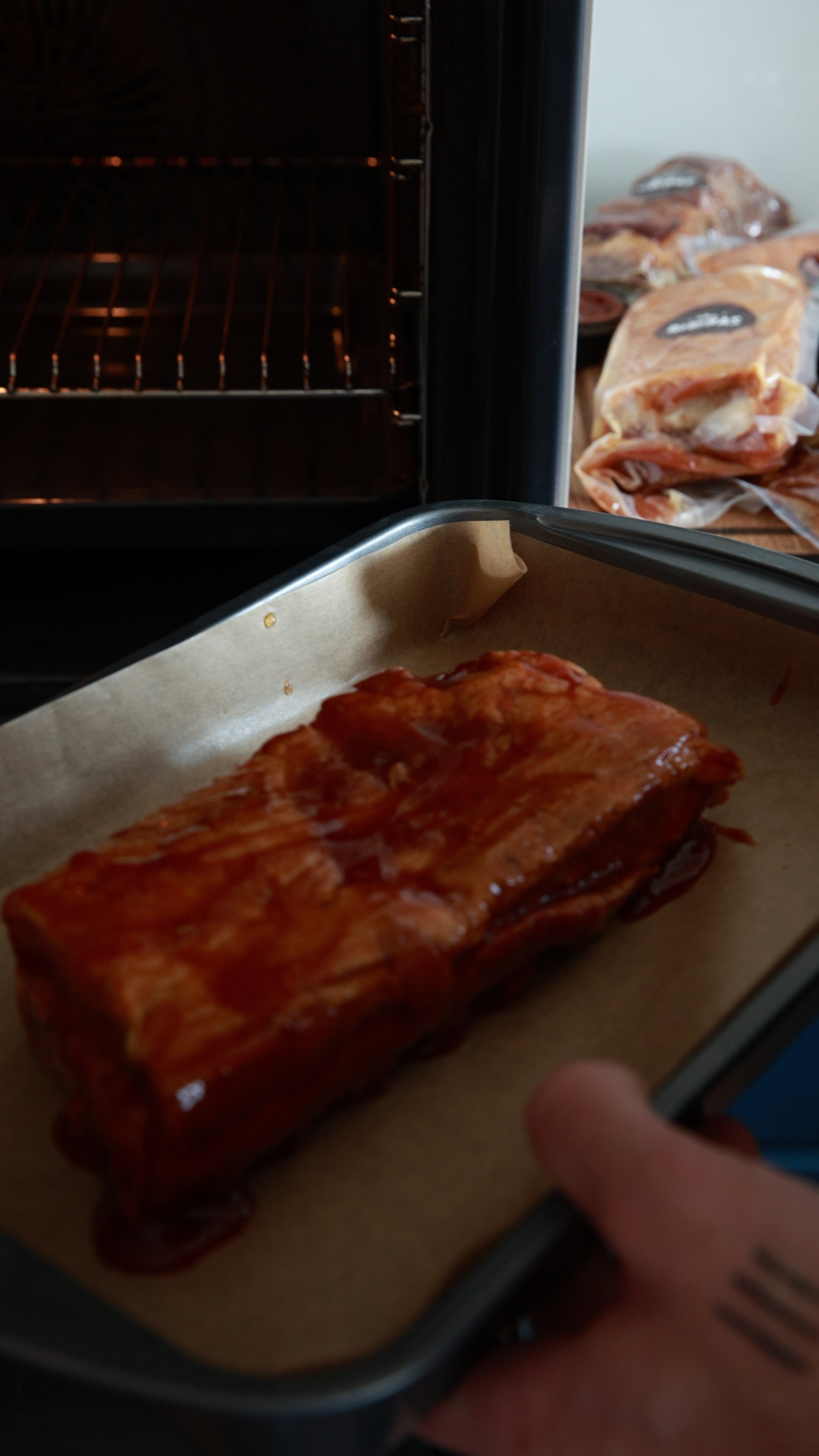 Liec ribiņas uz cepamtrauka un cep aptuveni 15–20 minūtes — viss process ir ātrs un vienkāršs, ideāli ikdienas maltītei vai brīvdienu BBQ!
