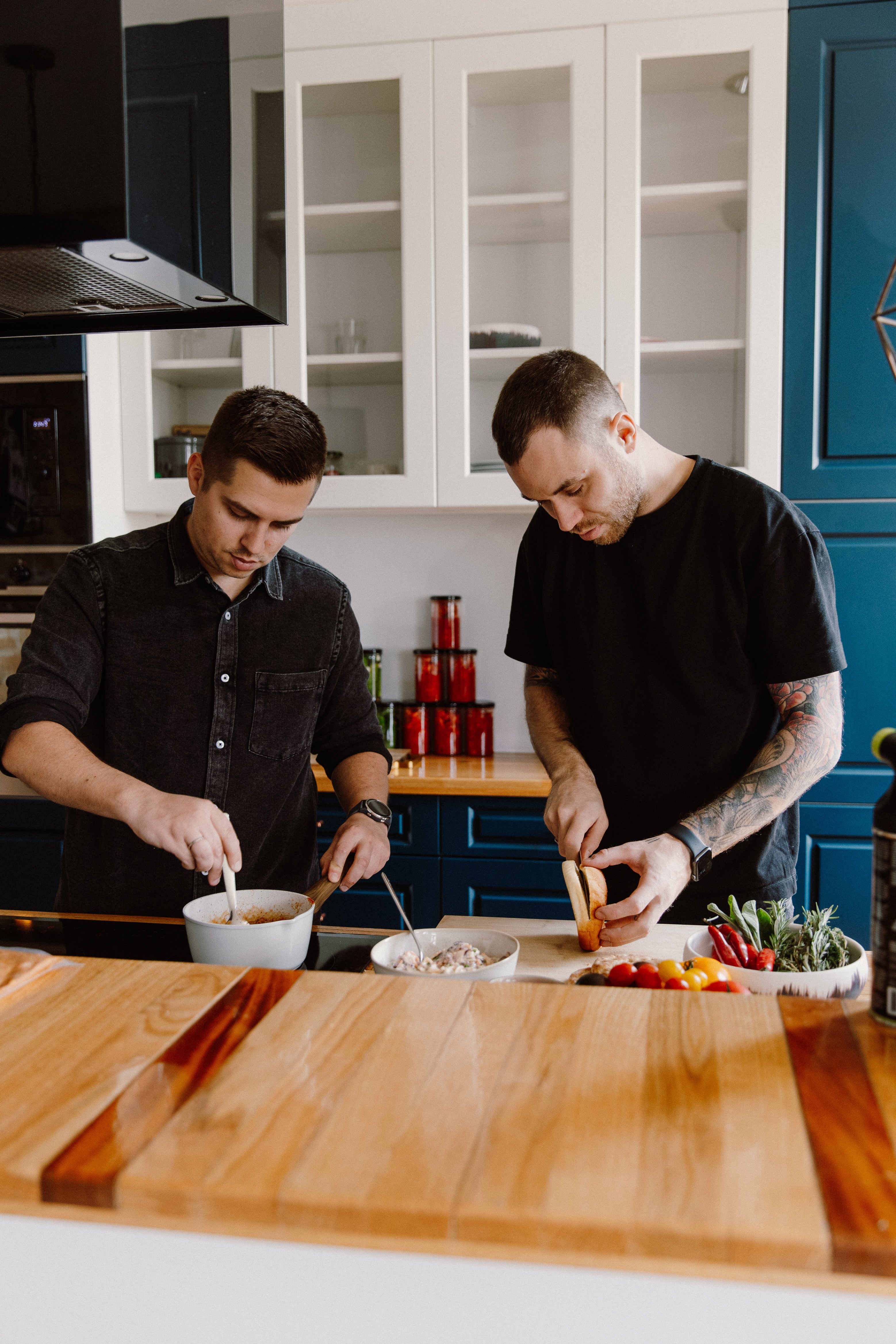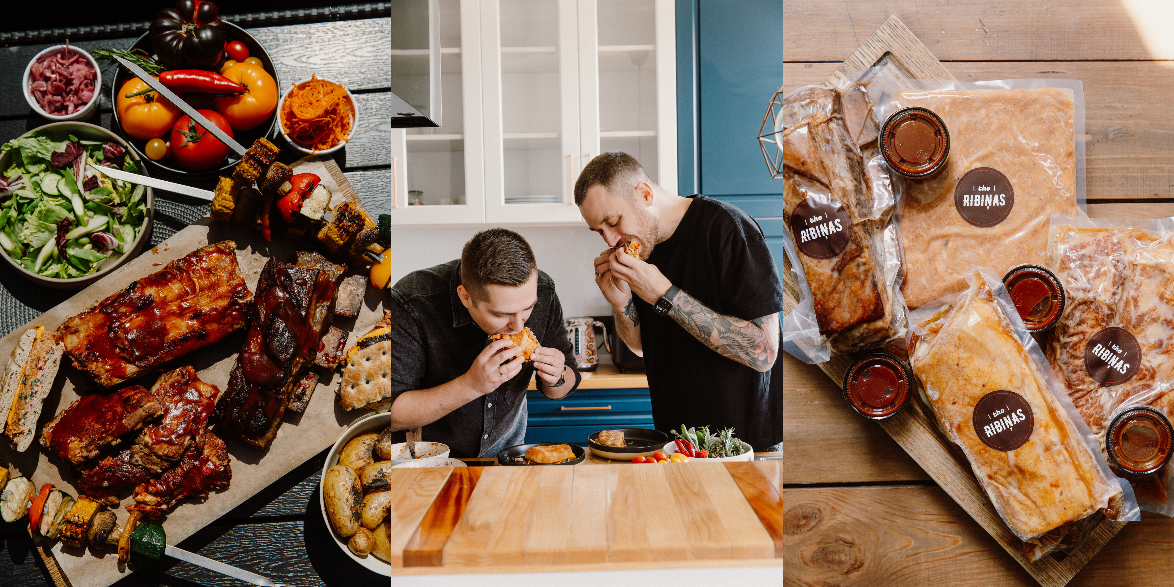Zīmols “The Ribiņas” pirmo reizi piedzima 2020. gadā, pandēmijas laikā. Restorāni bija tukši, cilvēki bija mājās, un mēs sapratām vienu: ja viesi nevar atnākt pie mums, tad ēdienam jānonāk pie viņiem. Tajā laikā Mārcis gatavoja lēni gatavotas ribiņas, bet Reinis — kūpinātas gaļas produktus. Mēs vēl nebijām pazīstami, taču abi strādājām pie līdzīgas idejas: radīt ērtu, kvalitatīvu komforta ēdienu, ko cilvēks var baudīt mājās bez sarežģījumiem.
