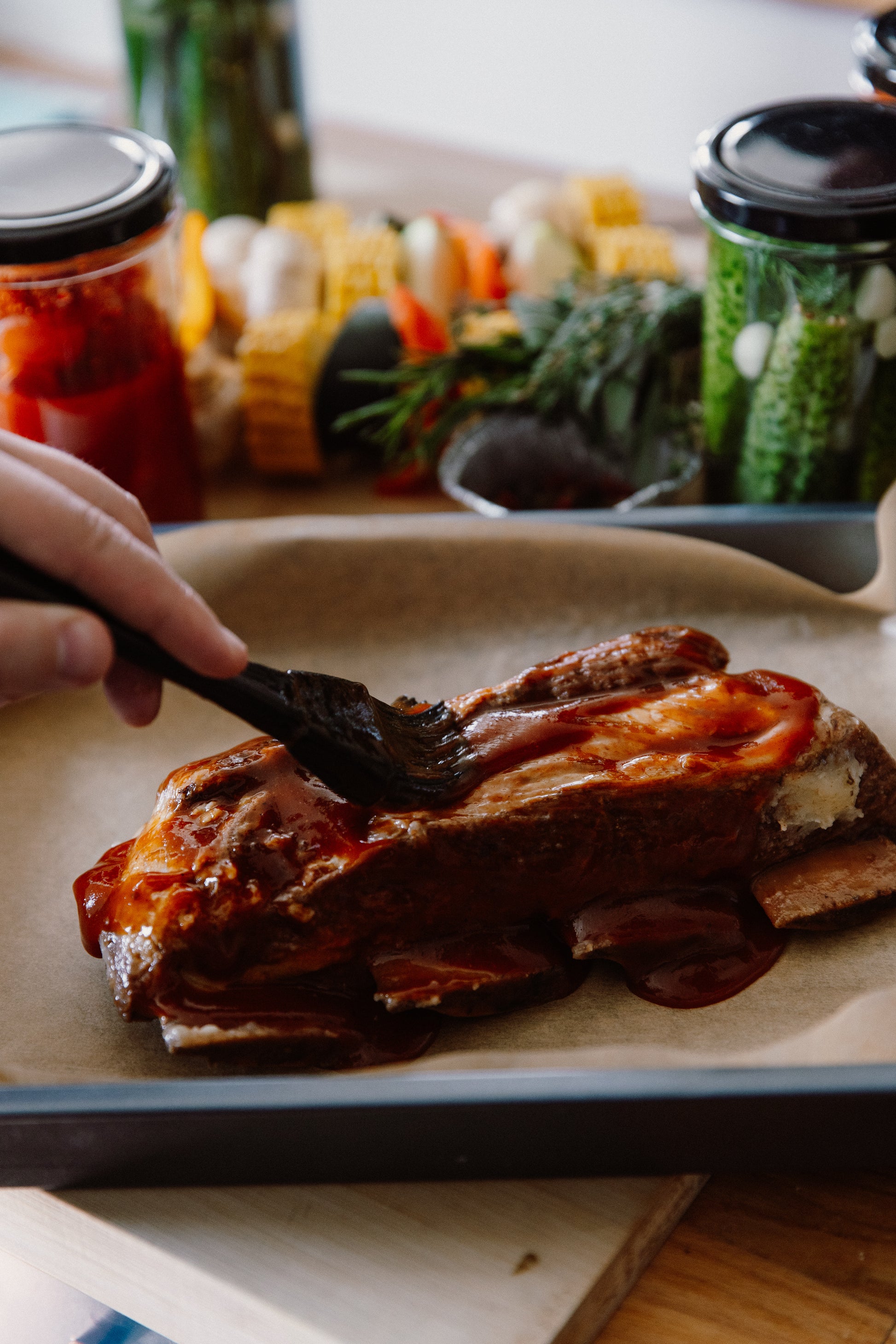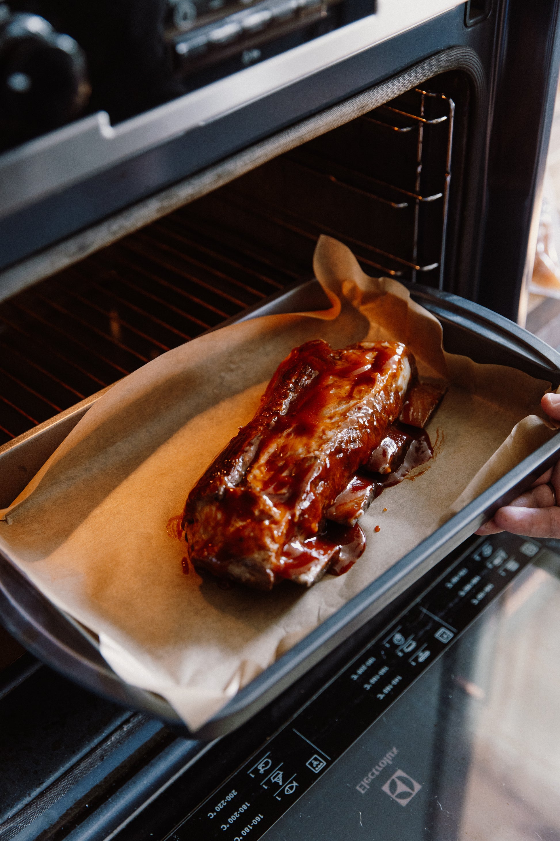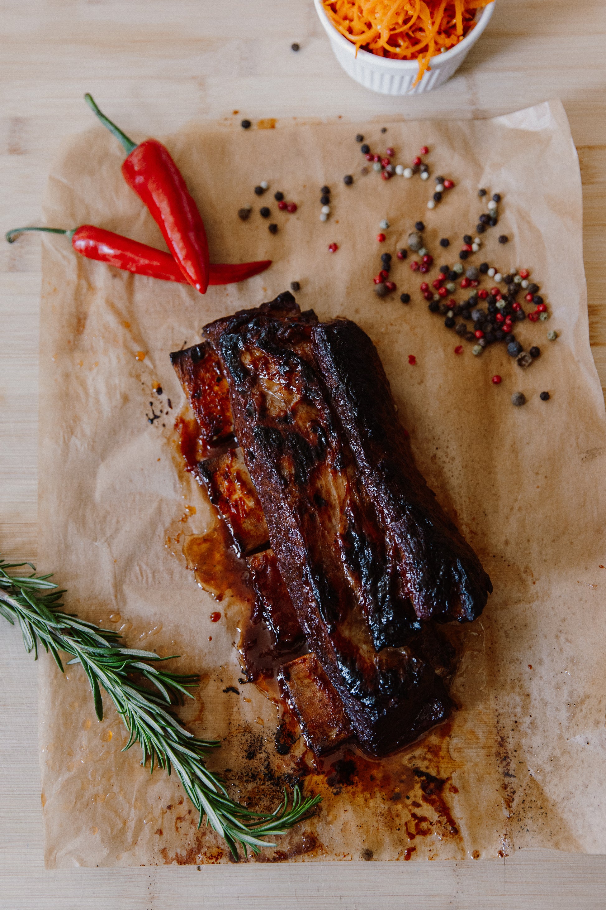 Liellopa ribiņas, BBQ mērce, dabīgs garšvielu maisījums (sāls, pipari, ķiploki).