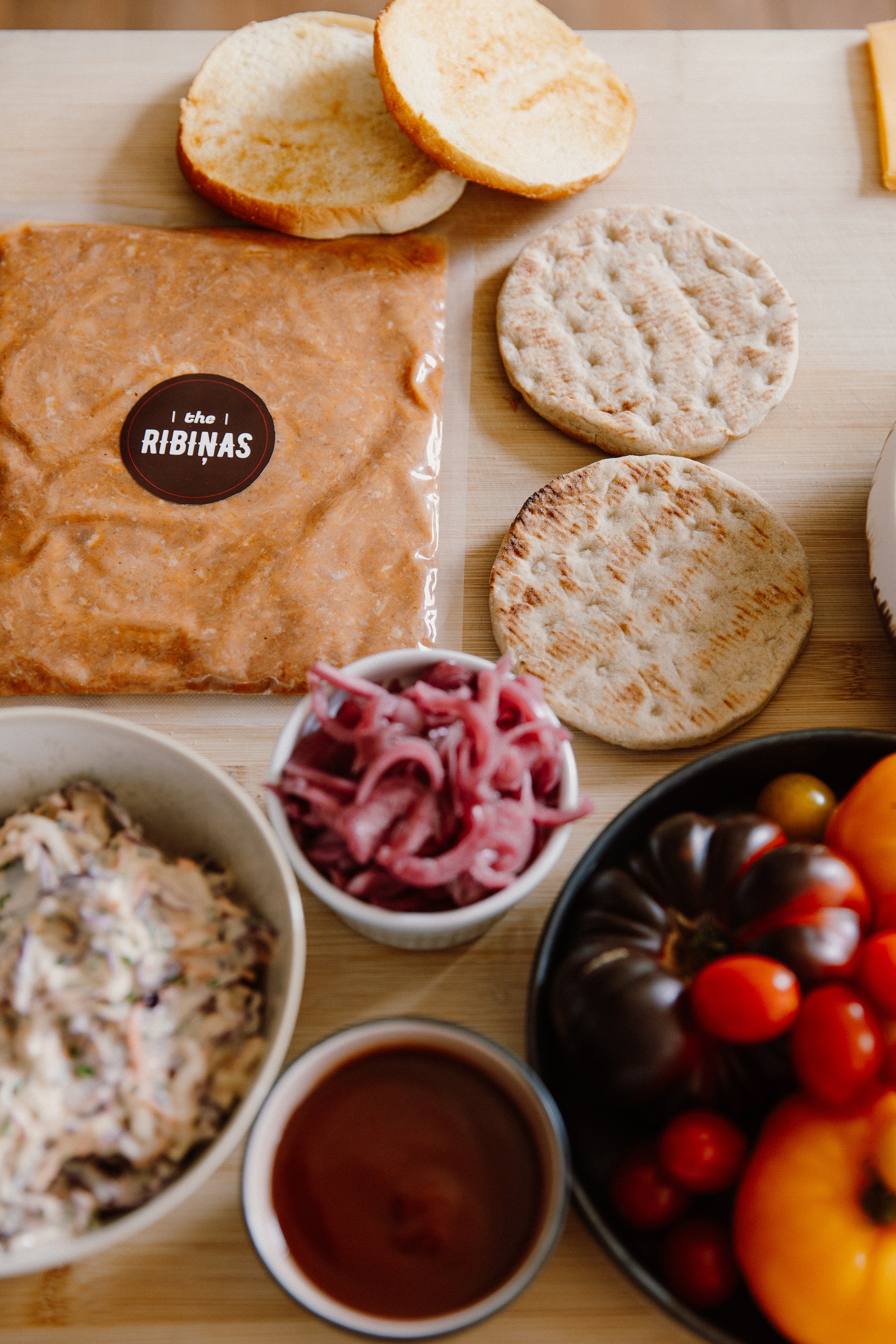 • Pulled pork burgerī ar marinētiem sīpoliem