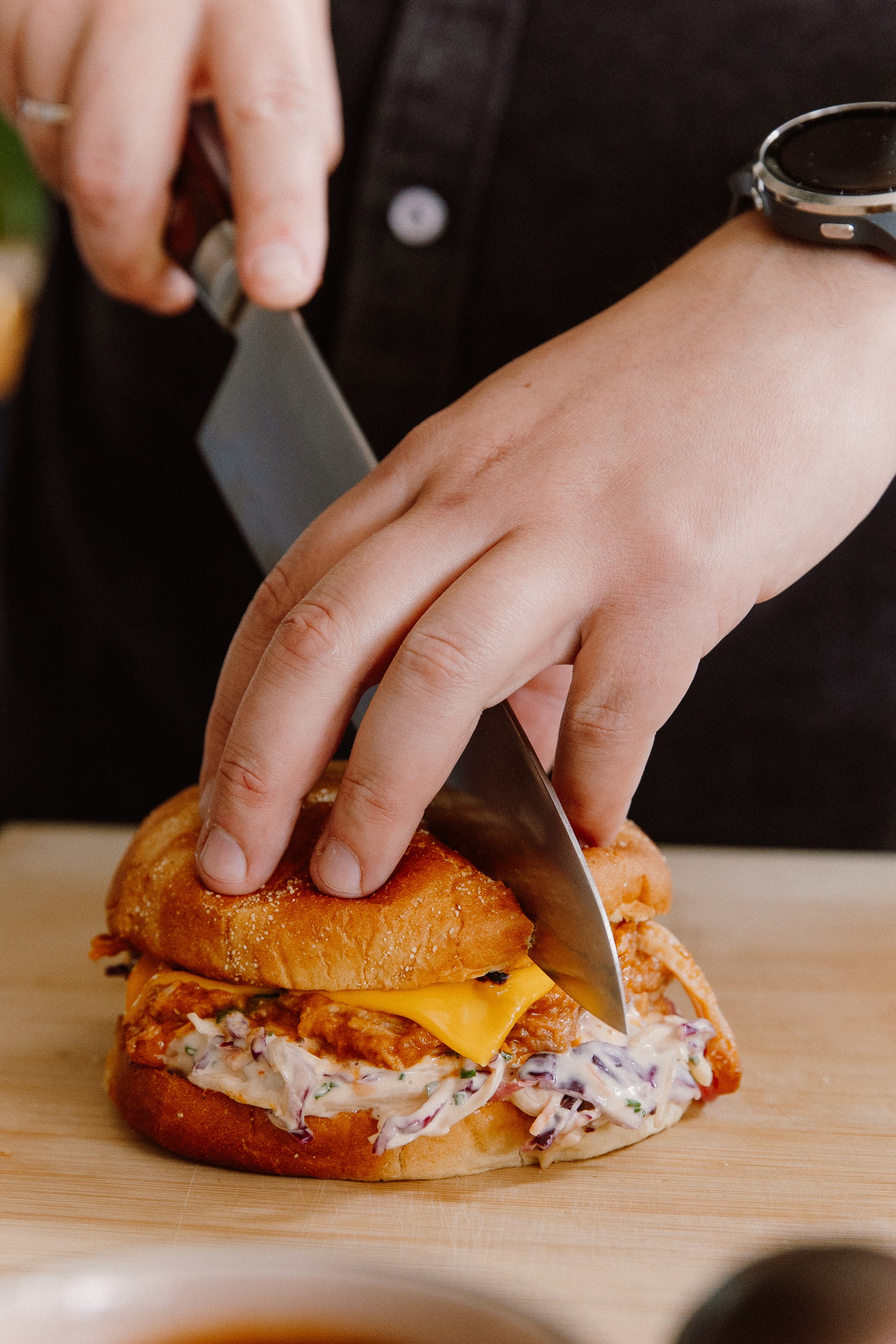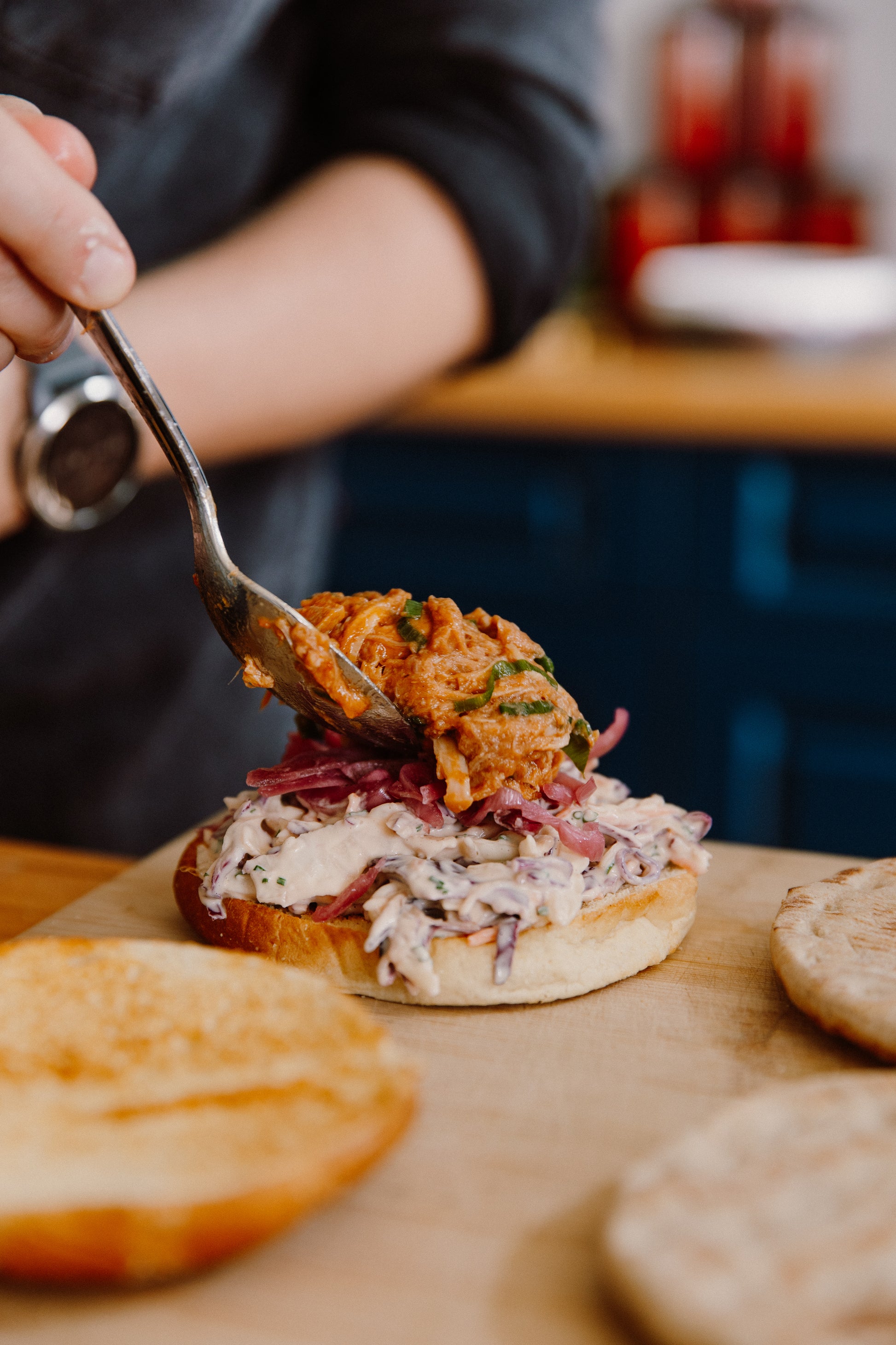 Mūsu pulled pork ir lēni gatavota cūkgaļa, kas vārīta "Sous vide " tehnaloģijā vairākas stundas zemā temperatūrā, lai panāktu izcilu maigumu un bagātīgu garšu. Mīksta, šķiedraina tekstūra un maigi kūstoša mutē – gatava lietošanai gan sviestmaizēs, gan burgeros, takos vai kā piedeva siltiem ēdieniem.