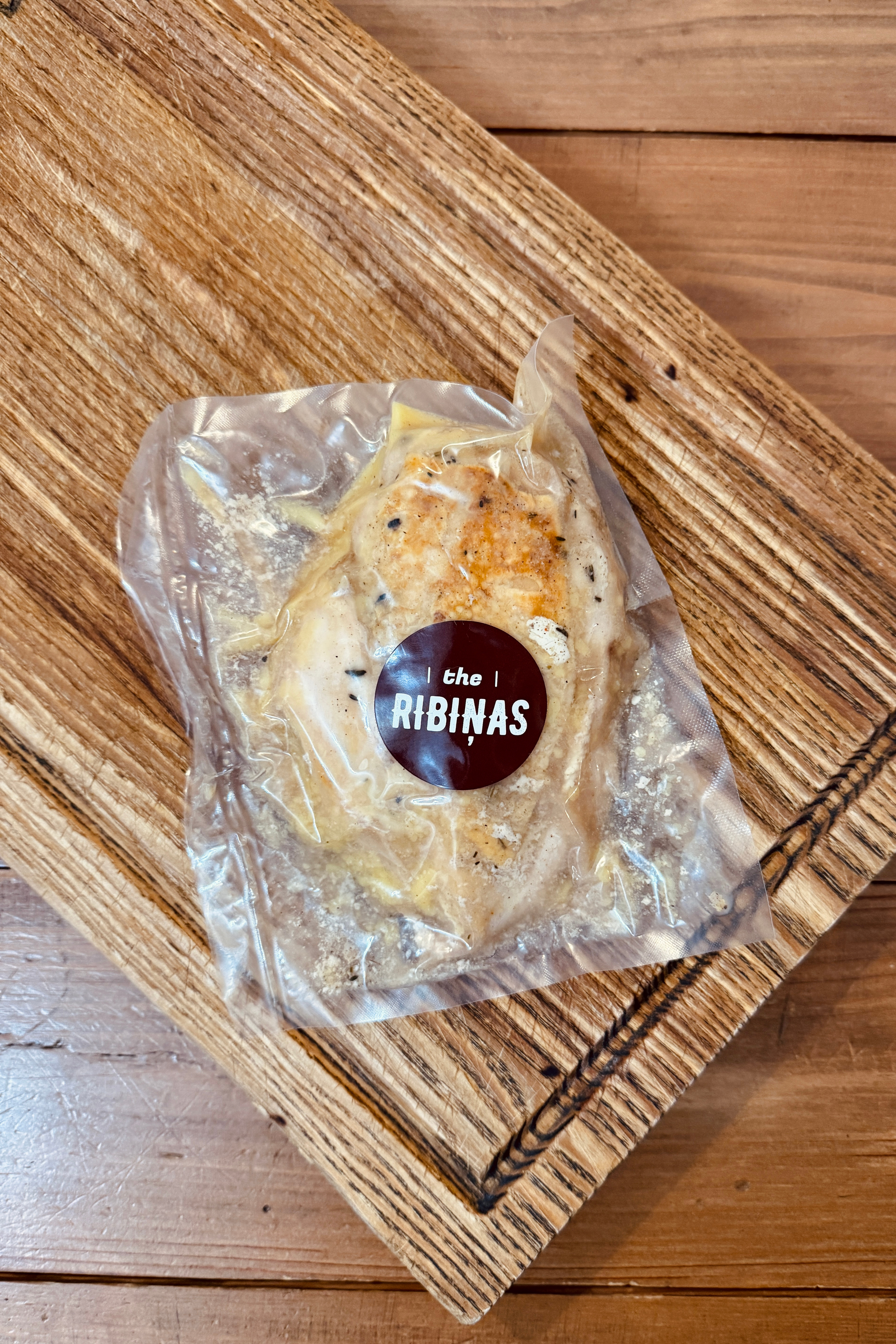 Vistas filejas krūtiņa ar ādu, kas lēni gatavota sous vide tehnikā zemā temperatūrā vairākas stundas, lai panāktu maksimālu sulīgumu, maigumu un izteiktu garšu. Ādas cepoties kļūst zeltaini kraukšķīga, bet gaļa saglabā maigu, mutē kūstošu tekstūru bez riska izžūt – ko mājas apstākļos panākt ir neiespējami.
